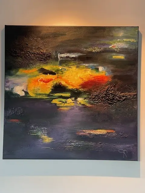 Peinture abstraite, intuitive, acrylique et huile, utilisation de divers médiums d’empâtements