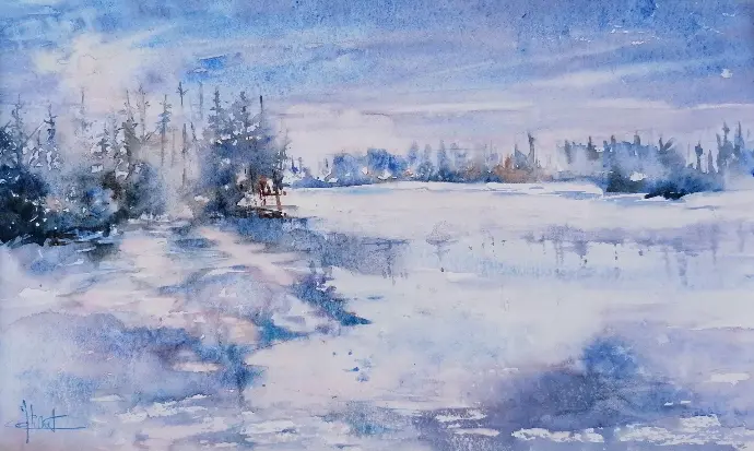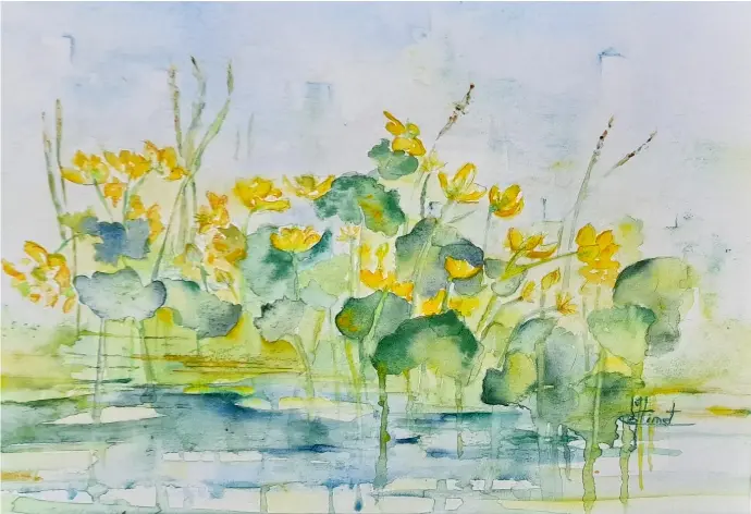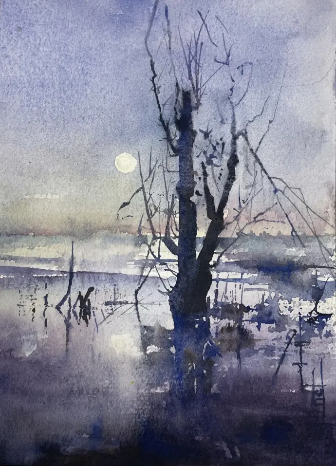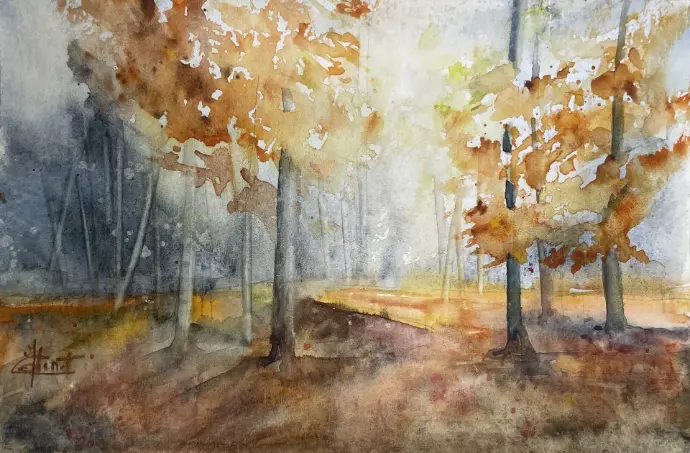 L’aquarelle, c’est l’aléatoire, jouer avec les couleurs, l’eau, appeler les contrastes et la lumière. Interpréter la nature, des sujets anodins, un piquet, fleurs, arbres… Du plaisir.
