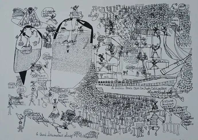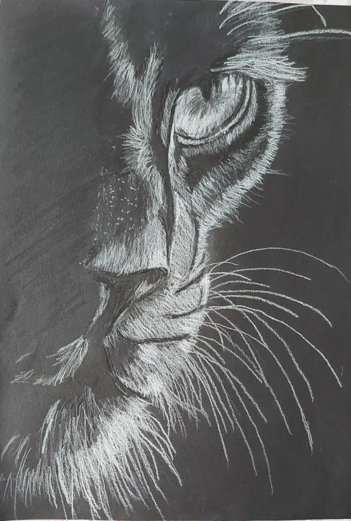 Techniques : Dessins au stylo à bille, au crayon aquarelle blanc sur papier noir, à l'encre de chine, aux marqueurs.