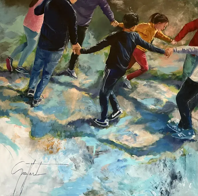 Peintre polyvalente adepte du paysage où l’aquarelle s’épanouit et se floute si bien, sans pour autant délaisser l’abstraction en acrylique et en techniques mixtes