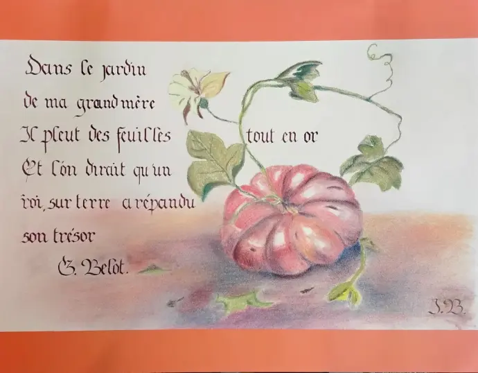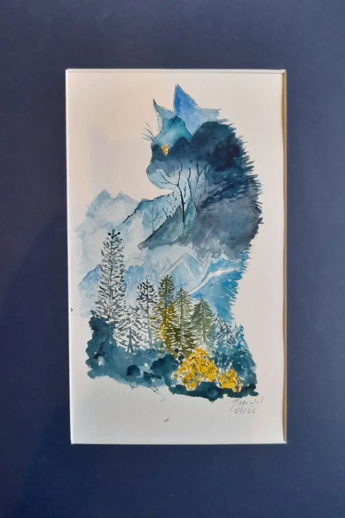 L’aquarelle fut mon premier centre d’intérêt. L’alchimie entre le pigment, l’eau et le papier était une source d’émerveillement. Ensuite, pour agrémenter mes aquarelles, je me suis formée à la calligraphie. Premièrement le zentangle, le dessin méditatif est venu compléter la palette de techniques que j’utilise avec plaisir.