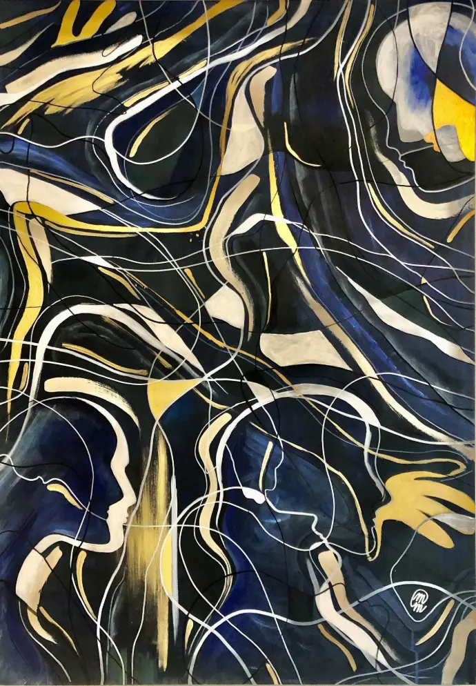 Technique artistique : peinture acrylique et technique mixte sur toile