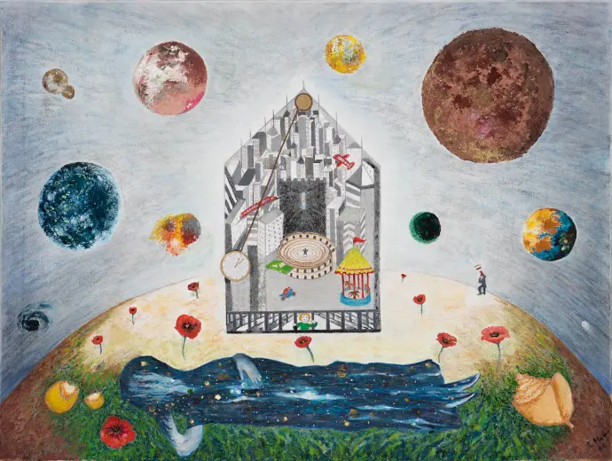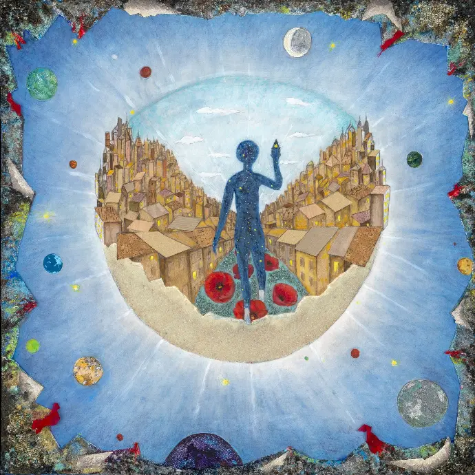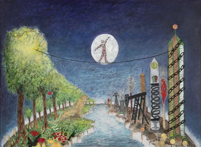Peinture figurative en acrylique, cire froide, pastel, aquarelle,collage