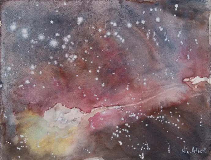 Du jeu libre des pigments dans l'eau qui se recherchent ou se repoussent, naissent des taches spontanées, sources de découvertes étranges, mouvements, fleurs, arbres, vagues, transparence, lumière, contrastes et harmonie, le rêve est au bout du chemin.